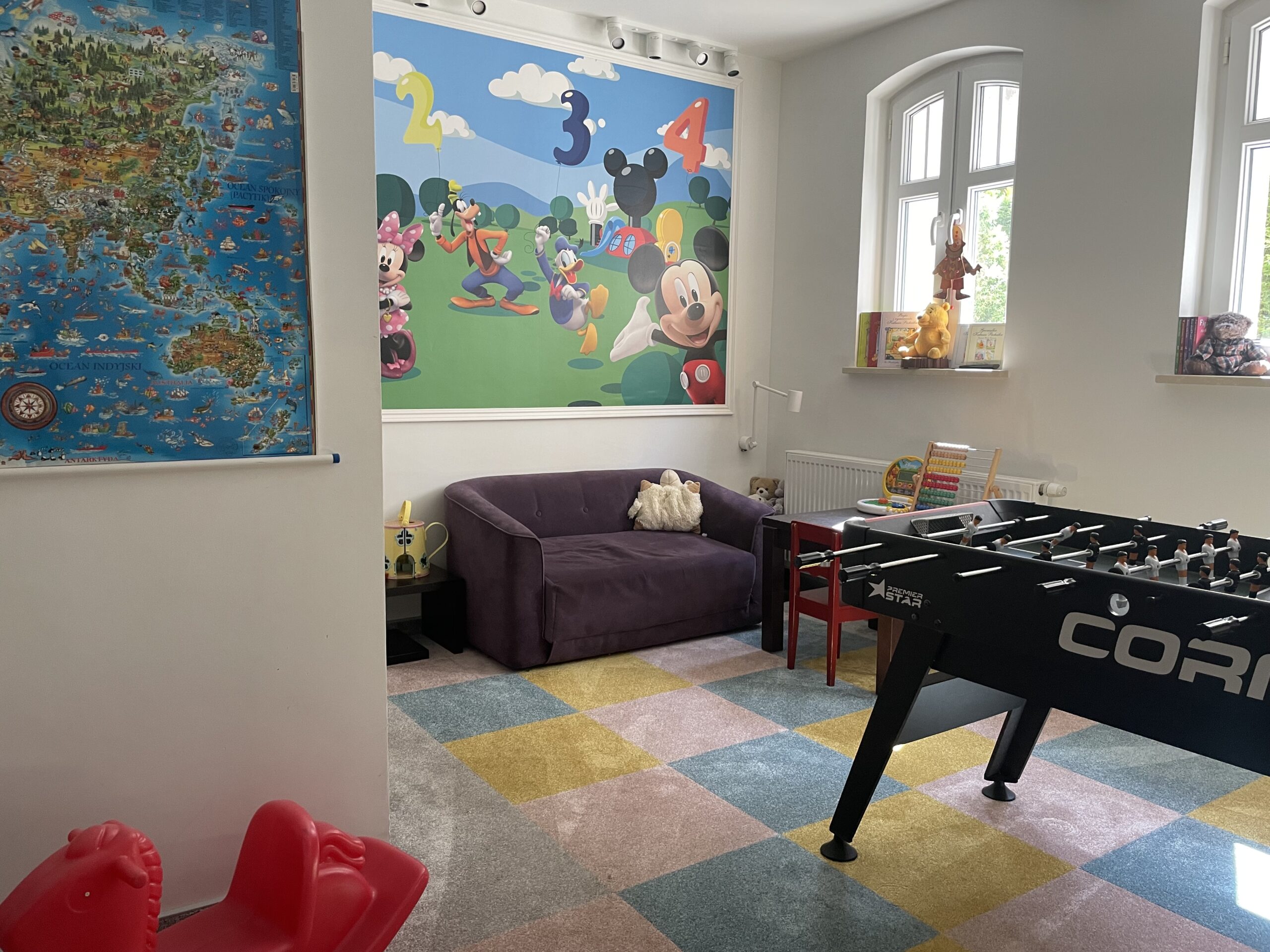 • Pokój zabaw z kredkami, kolorowankami, klockami i mnóstwem zabawek